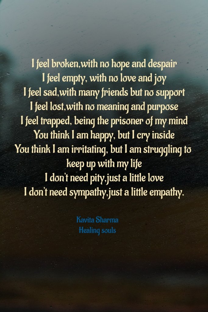 Let us all remember that every emotion is a way of expression of our hidden feelings. Embrace your emotions instead of fighting it, give it love and acceptance, it will go away.